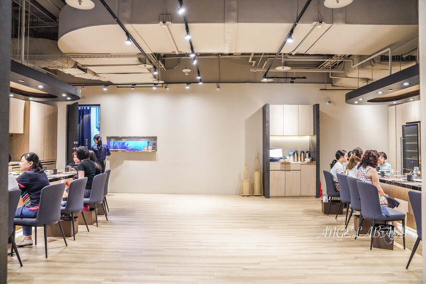 除了門口可以看到活水族裡的龍蝦、用餐區還有一個水族