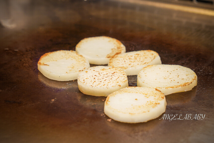 搭配鐵板燒的是解膩的紫蘇梅蓮藕漬物以及洋蔥丁(吃到一半服務生就會趕快補滿,非常貼心)