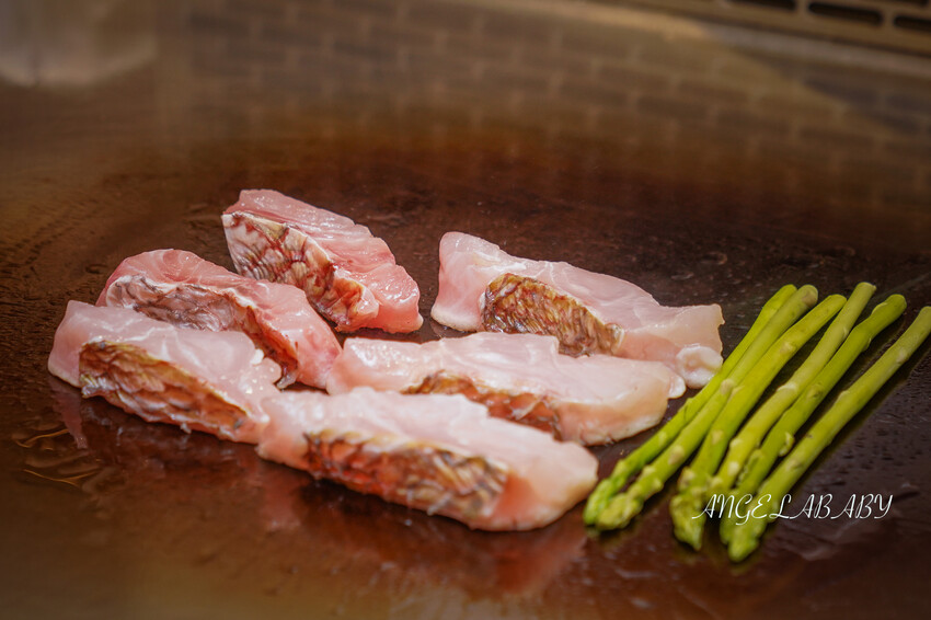 阪前和牛鐵板燒、初魚鐵板燒都只給1/4,只有明水然樂無菜單鐵板燒給1/2尾,真的超級大器!
