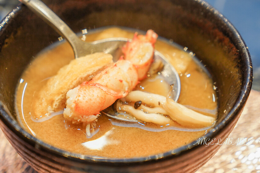 溫度很熱加分,味噌湯裡有菇類、龍蝦腳、腐皮