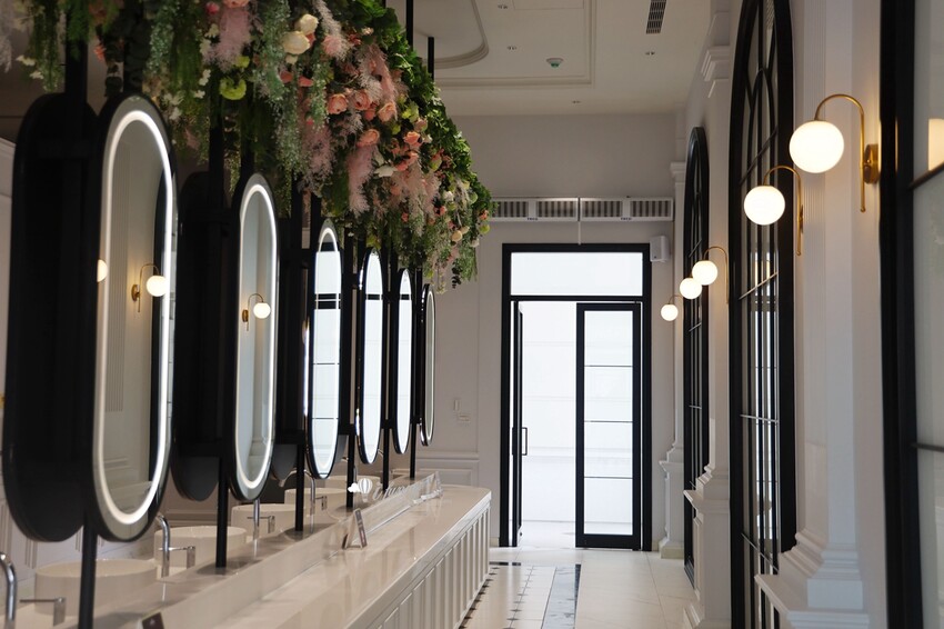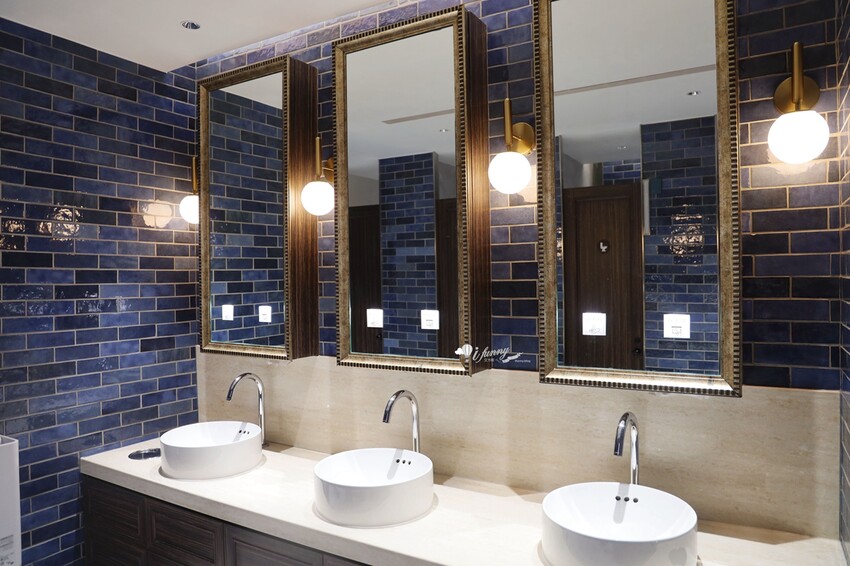 而女廁的洗手檯準備了有女神光環的化粧鏡,這整個美到不想出去。