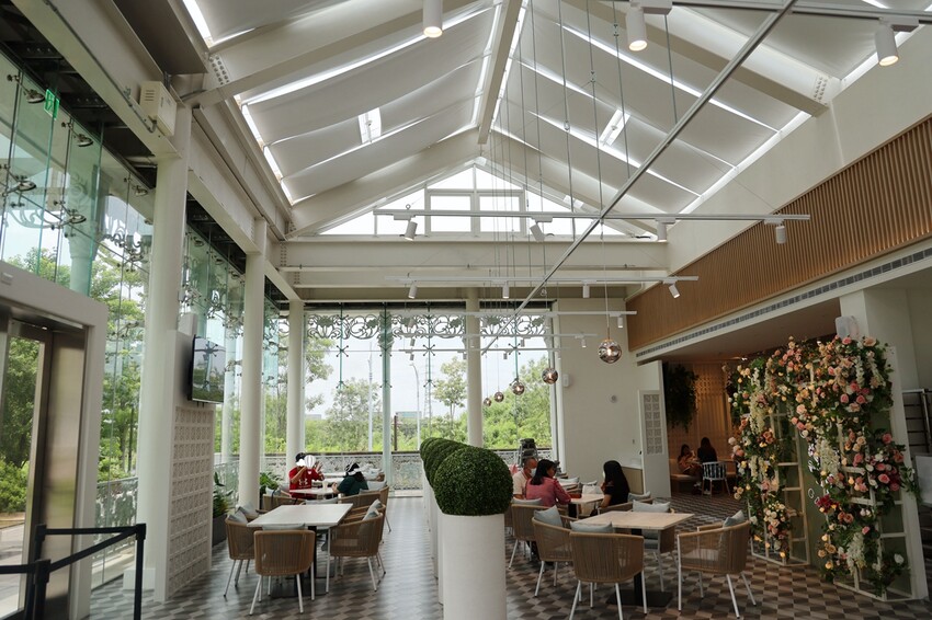 挑高的天花板,及大量的落地窗,形成一個美麗的玻璃屋。