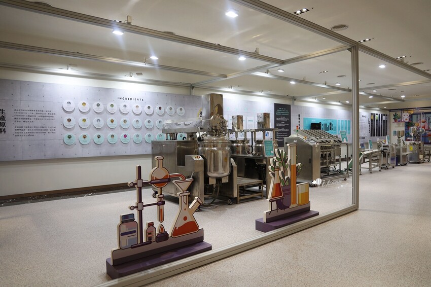 手作教室的一旁有保養品製作的過程說明,還有精密的器具。