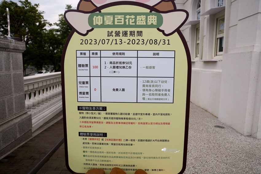 門票:8/31前試營運體驗票價100元,憑門票購買產品可折抵50元。