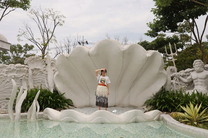 在《維納斯的誕生》的畫作中,生自海上的女神,以優美的情態站在一片貝殼上,我們也跟著在貝殼中拍張照,希望自己也能成為美麗與愛兼具的女神。