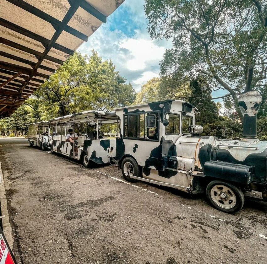 穿梭在牧場樹林間的環場牛牛遊園列車,遊園一圈大約15分鐘,沿途會有廣播講解每個區域的特色,可以先搭乘環場列車大概了解整個園區的樣貌後,再決定是否需要租借協力車或電動車。