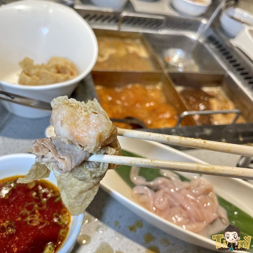 放入湯底煮3-5分鐘後,一口咬下有肉汁、彈牙蝦肉和豆皮香三種不同層次的口感,讓小米一吃難忘耶!