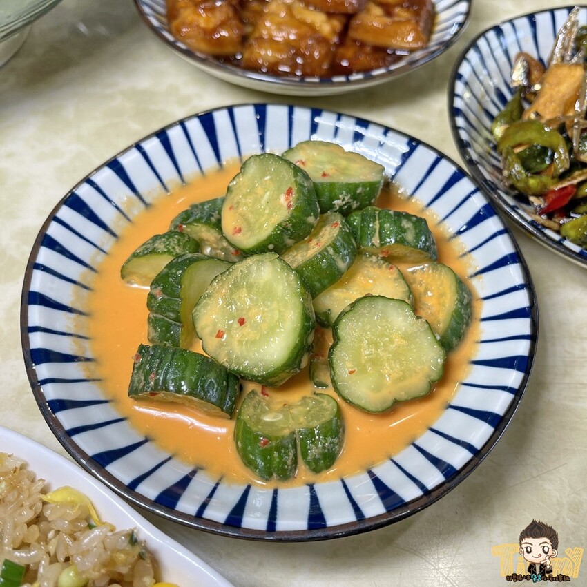 小黃瓜泡菜(50元)偏鹹屬於重口味的小菜。