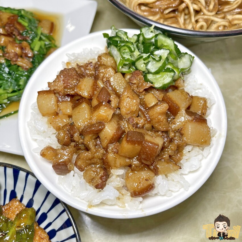 肉燥滷製入味帶有膠質的口感,搭配醃黃瓜很解膩,大口大口吃有滿滿小確幸