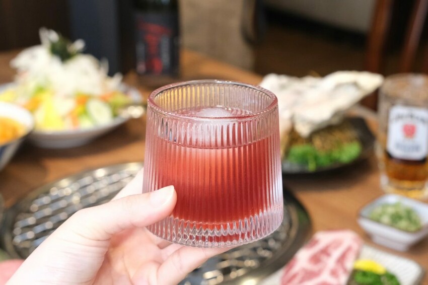 ▼除了生啤酒也有爽口的沙瓦等可以點,莓果黑醋栗果實酒的酒味淡雅,尾段有著果香酸感與細緻韻味,酸中帶甜的梅子沙瓦搭配燒肉也很適合。