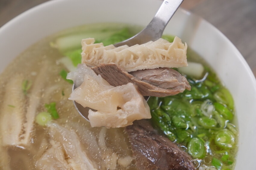 另一碗則是點了「清燉牛三寶麵」,這碗也相當推薦! 清燉湯頭清澈見底,搭配上燉得軟爛的牛筋、牛腩跟牛肚,配上有嚼勁的粗拉麵,豐富層次感都在這碗裡了~「簌~簌簌」一下子就要把整碗吃光光。