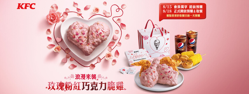 七夕限定 KFC肯德基玫瑰粉紅巧克力脆雞餐 預定方式