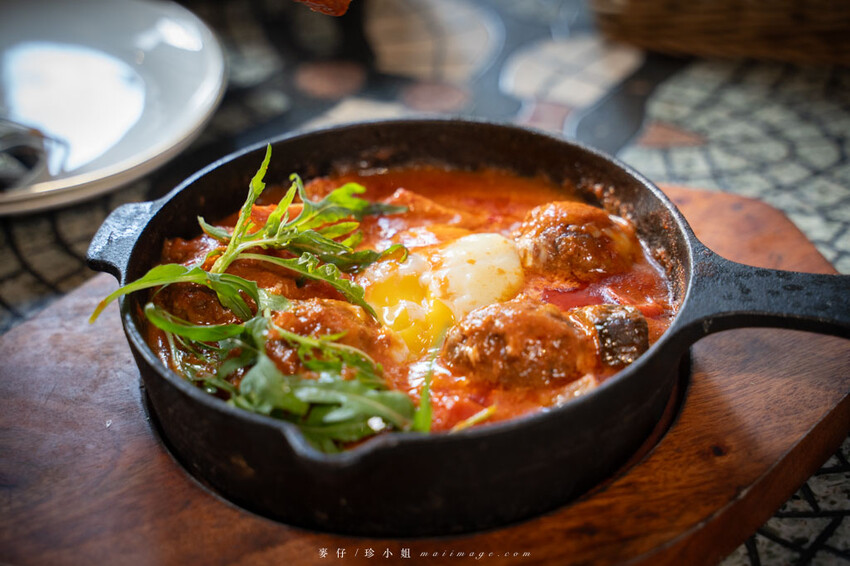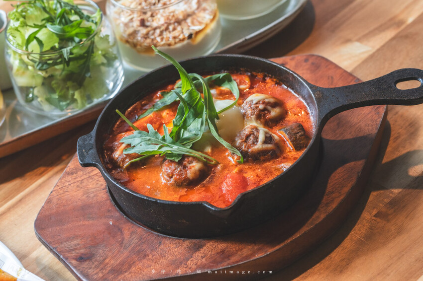 他們家的這款牛肉丸表現真不錯,口感扎實裡面的洋蔥香氣跟肉香比例恰到好處,帶點淡淡的胡椒香氣很不錯,鐵鍋裡面的番茄醬那味道協調滋味真棒,中間的太陽蛋液跟番茄醬融合那真的是太邪惡。