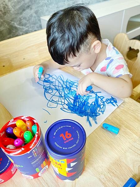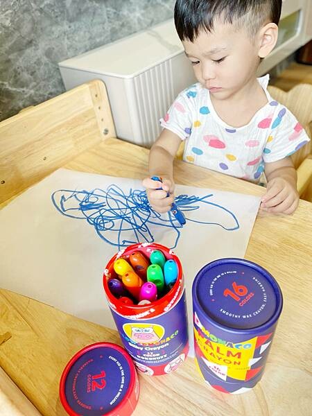 兩種截然不同的蠟筆材質,他都非常喜歡喔!