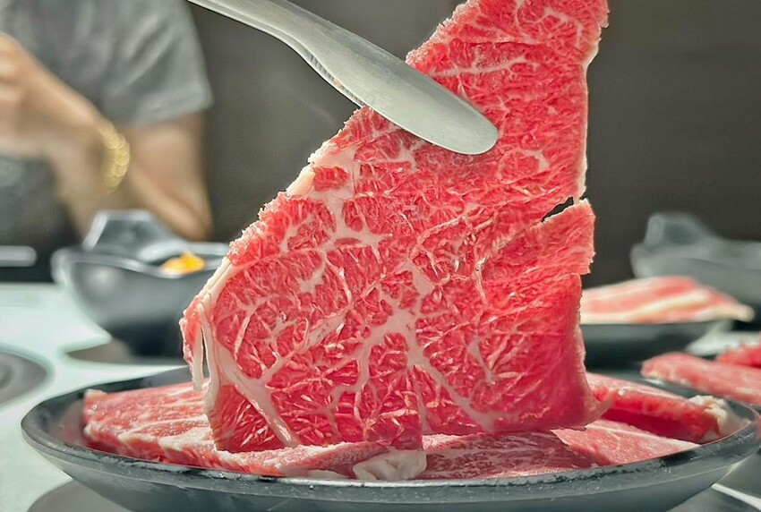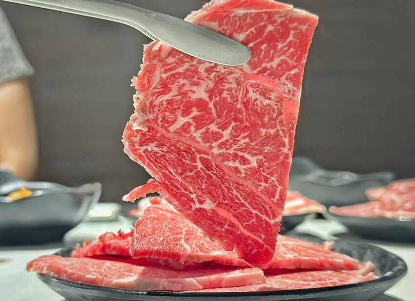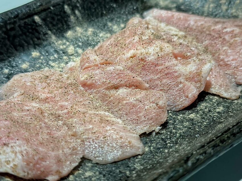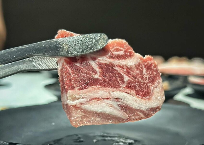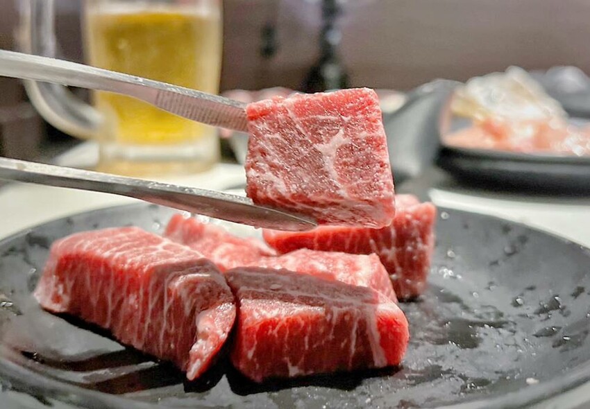 來炙高無上炭火燒肉中壢店超推他們家的牛舌、手工切的骰子牛肉、牛肋條等,這邊也要說肉質的新鮮度、厚度都真的很不錯,不會薄如紙片!