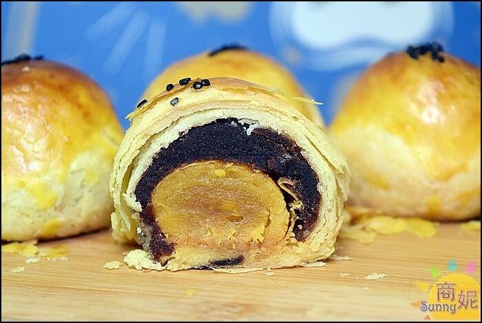 新鮮鴨蛋黃加上甜度不高的紅豆沙、與香酥餅皮整個剛剛好的完美比例,酥鬆好吃又不會膩口,多層次的口感越吃越涮嘴,我們家大人小孩都喜歡,我一個人就可以連吃2、3顆沒問題~XD。