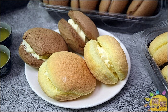 原味跟巧克力雲朵蛋糕都有包夾奶油內餡,乍看有點像哆啦A夢愛吃的銅鑼燒,但是比銅鑼燒還要胖、還要蓬鬆。