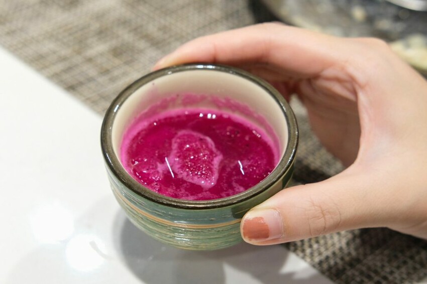 ▼用餐到一半會送上火龍果冰沙,冰涼酸甜很有解膩效果。