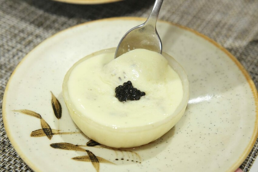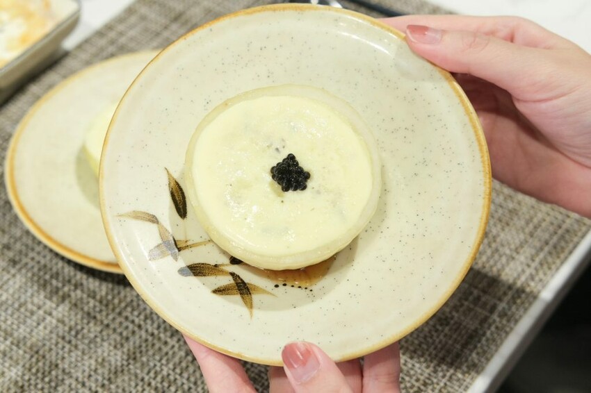 ▼如同藝術品的魚子醬松露洋蔥蒸蛋,洋蔥外皮内是滑嫩的松露蒸蛋,淡淡的松露的香氣好迷人,頂頭的魚子醬讓風味更升級。