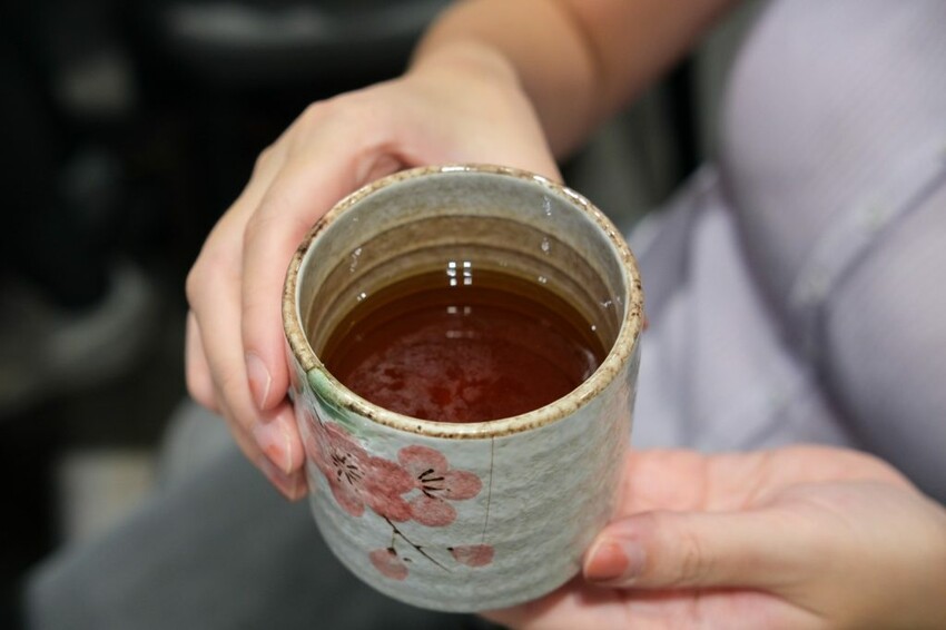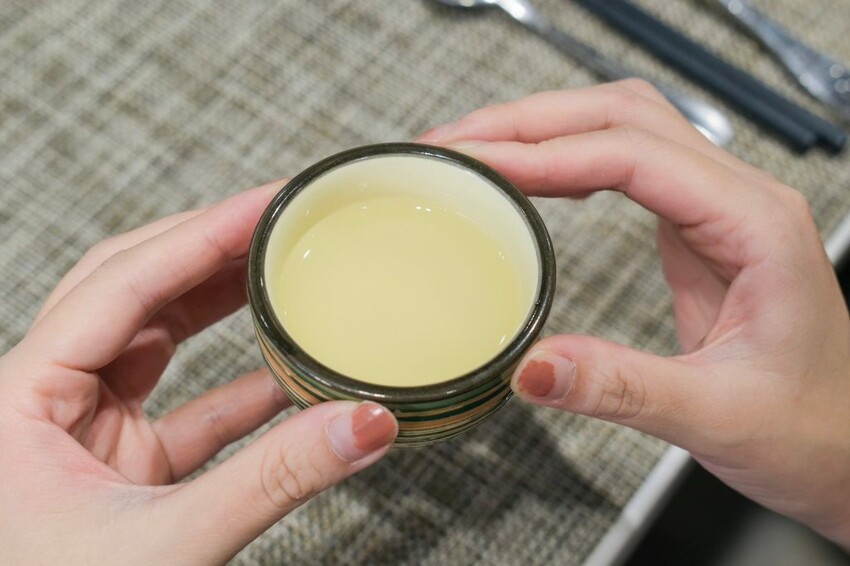 ▼入座服務人員就會倒上一杯熱茶,這次喝到的是荔枝烏龍茶,沒有甜味,有著迷人的荔枝香氣很耐喝。