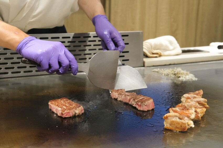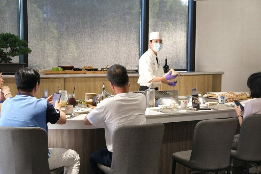 【明水然・樂無菜單鐵板燒】午晚餐的價格是每人1600元加一成服務費,包含前菜、湯品、主菜跟甜點共會有14道料理,主廚會根據當季的菜色不定時更換菜單,每一道餐點都必須歷經3個月以上,不斷測試、研發、創新,多次評比後才會入菜單,結合當季時蔬與活海鮮配菜打造不同風味,每次來可能都會也不同的驚喜,另外採取線上訂位預付餐費制度,提供一個月內場次線上預訂!