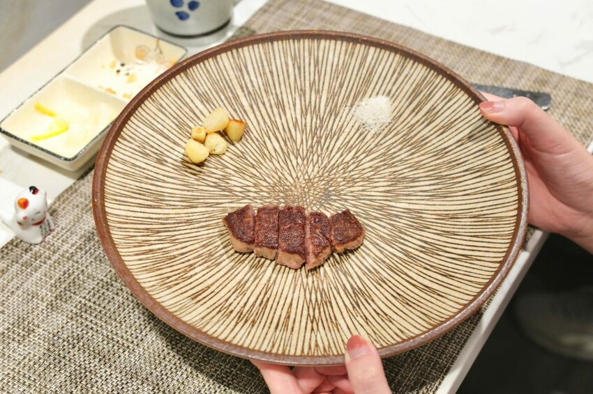 ▼肉品供應日本A5和牛牛排和桂丁雞兩種選擇,和牛選用熊本A5和牛和日本鹿兒島A4和牛,油花真的美到不行,建議五分熟口感最佳,吃進嘴裡豐富的油脂在口中炸開,軟嫩好咬,入口即化的滋味讓人著迷!