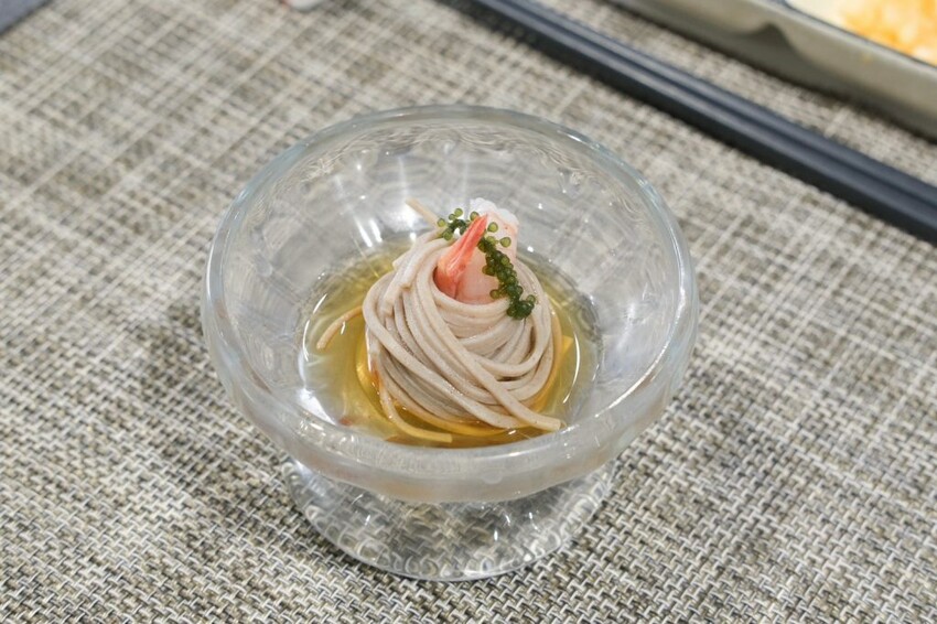 ▼一口剛剛好的北極甜蝦蕎麥麵,甜甜鹹鹹的調味清爽,搭配鮮甜的鮮蝦好開胃!