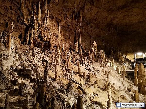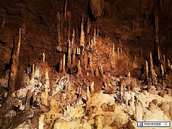 整個洞內的面積很寬廣,走在步道抬頭張望,無論是從頂端垂下的石柱,還是地底鑽出的石筍,大大小小形狀奇特,而且密度也高。