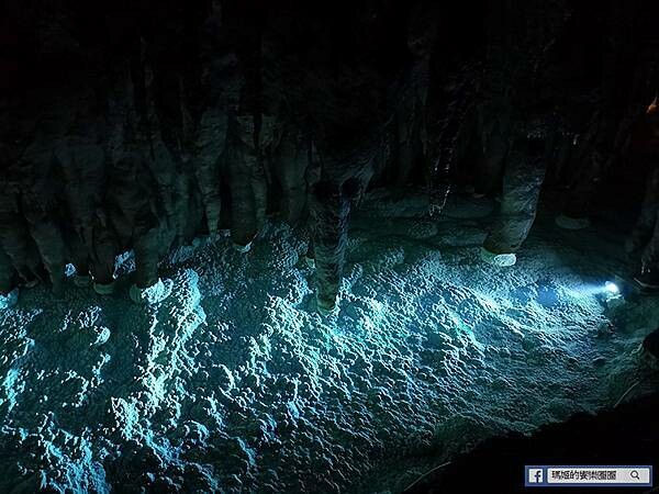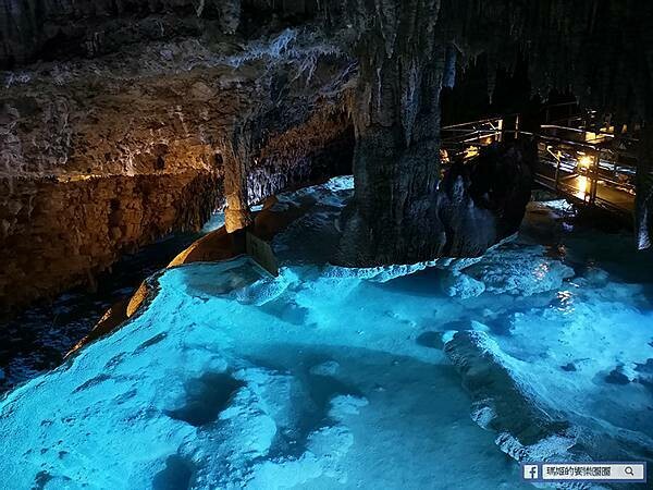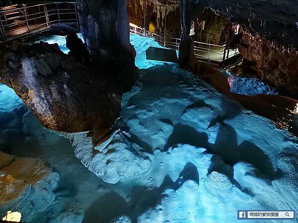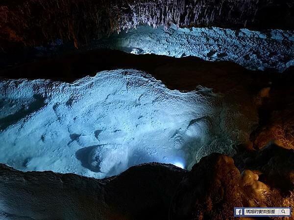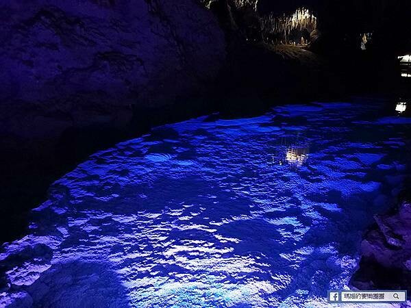 洞穴內有幾處有天然湧泉,運用燈光效果去營造氣氛。