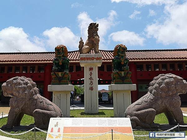 來到沖繩世界文化王國的入口,五隻風獅爺雄壯威武仰天獅吼,很難不讓人看到。