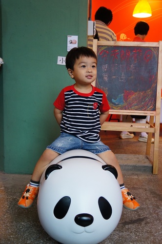 所以有時間可以體驗一下喔~弟弟看到娃娃都要抱一下︿︿三樓的書籍旁有餐廳可以休息,