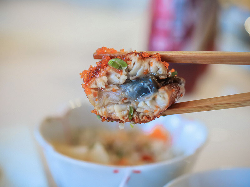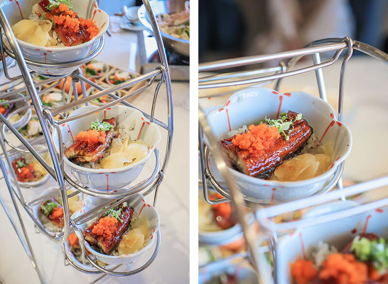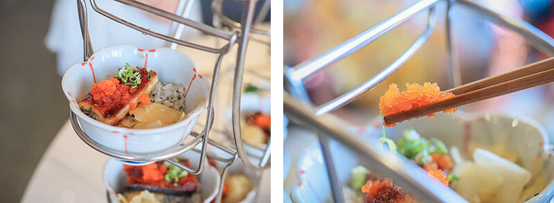 以壽司醋飯拌入經典黑松露,微微的松露香氣襯托出高級口感,蒲燒鰻選用雲林的白鰻,口感上油脂度不會過肥,微甜的醬汁更能彰顯軟嫩的鰻魚肉質,頂部在鋪上滿滿的蝦卵,添了鮮度也多了啵啵的口感。