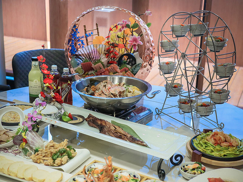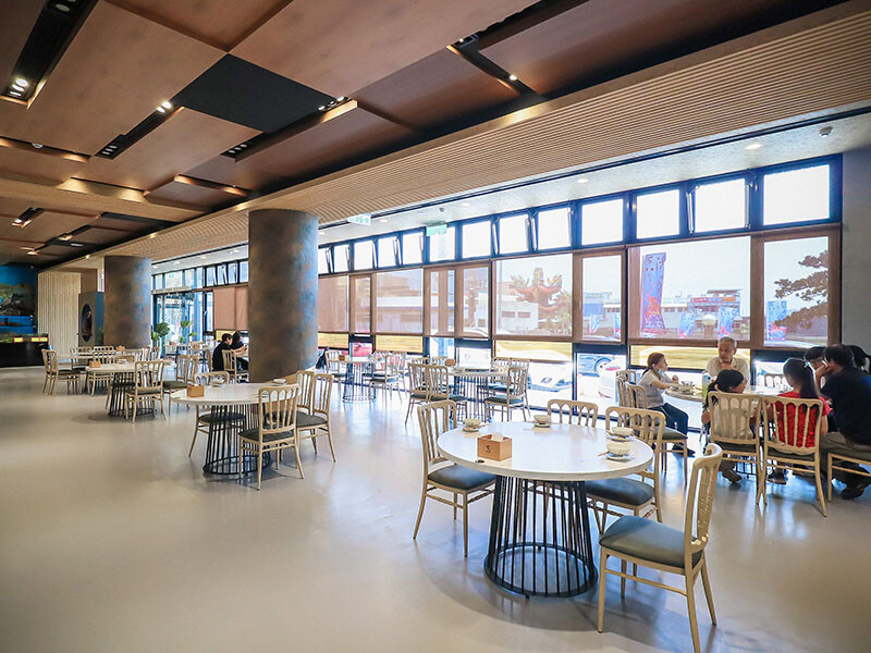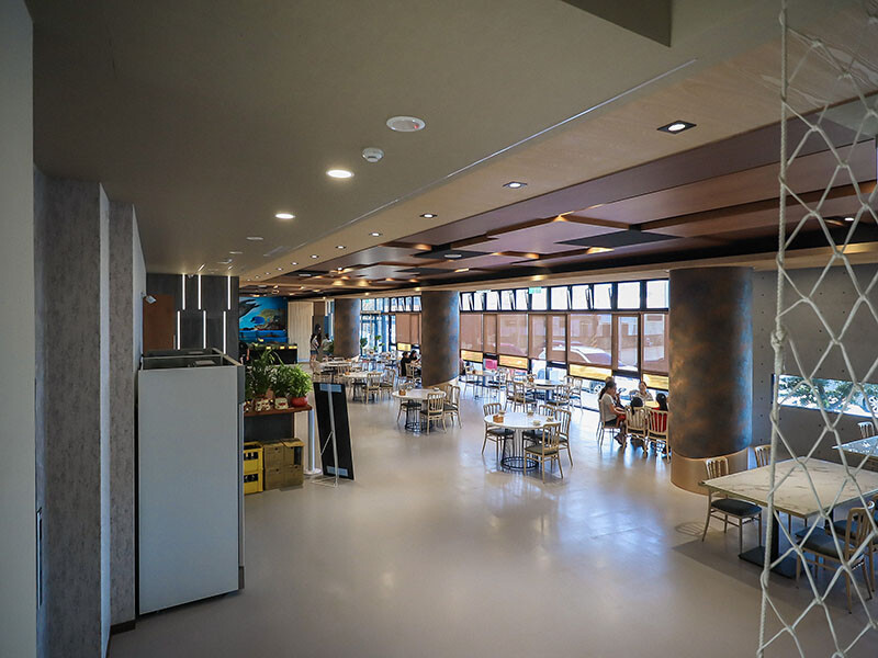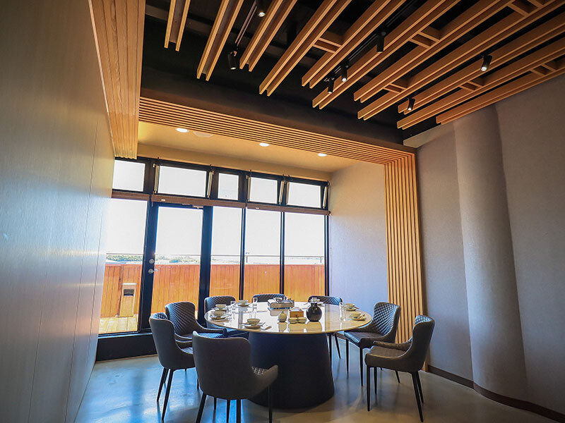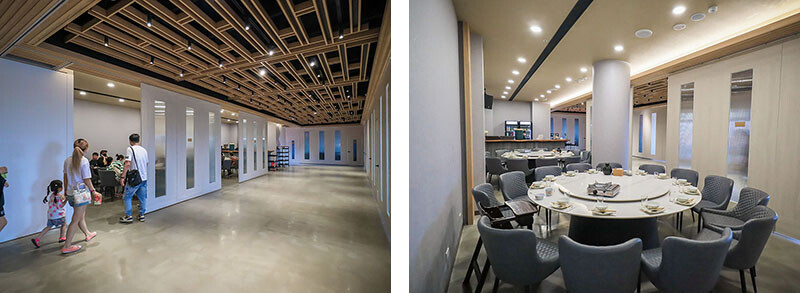 來到二樓的空間也很寬敞,左邊兩大桌的空間適合20人左右的大家庭;今天與好友聚餐約的是右側的面海景觀包廂,十人大桌搭配的是沙發座椅很舒適,即便擺放了嬰兒推車、包包等也都不覺得擁擠,空間規劃的很寬裕。