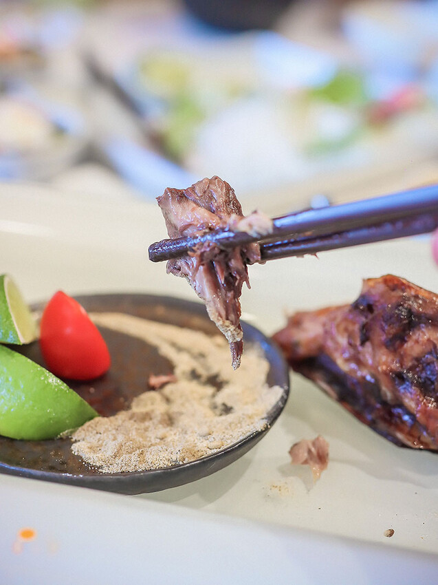 鮮嫩多汁的魚下巴一直都是老饕的最愛,那一定會更愛這道黑鮪魚下巴,附上手模單看下巴就可以想到這尾黑鮪魚到底有多大隻!品嚐黑鮪魚肉不需過度調味,單單鹽烤料理更能品味其柔嫩鮮美。