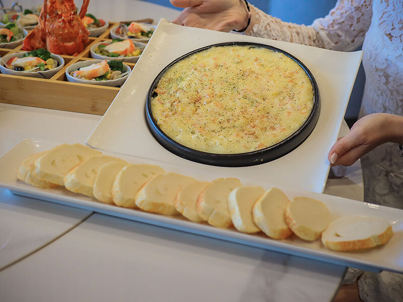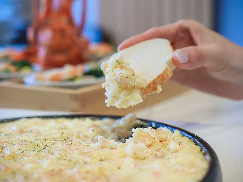 以蝦頭與花枝下去熬煮湯頭而成的醬汁,吃起來一點甜甜的也吃得到蝦肉,直接用麵包杓醬享用都不錯。