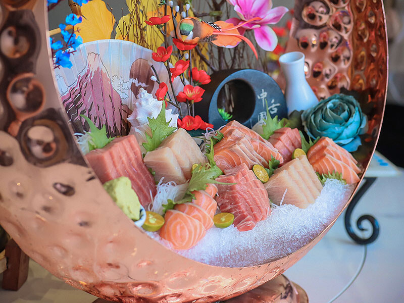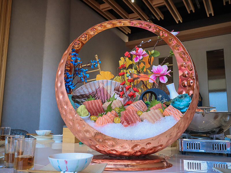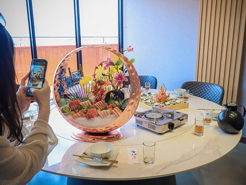 這一座上桌正在聊天的大夥都安靜了,被我戲稱為生魚片界的觀自在,匯集姿色、造型的妖嬈美麗,這才對得起姿造注重視覺美與味蕾的料理搭配。