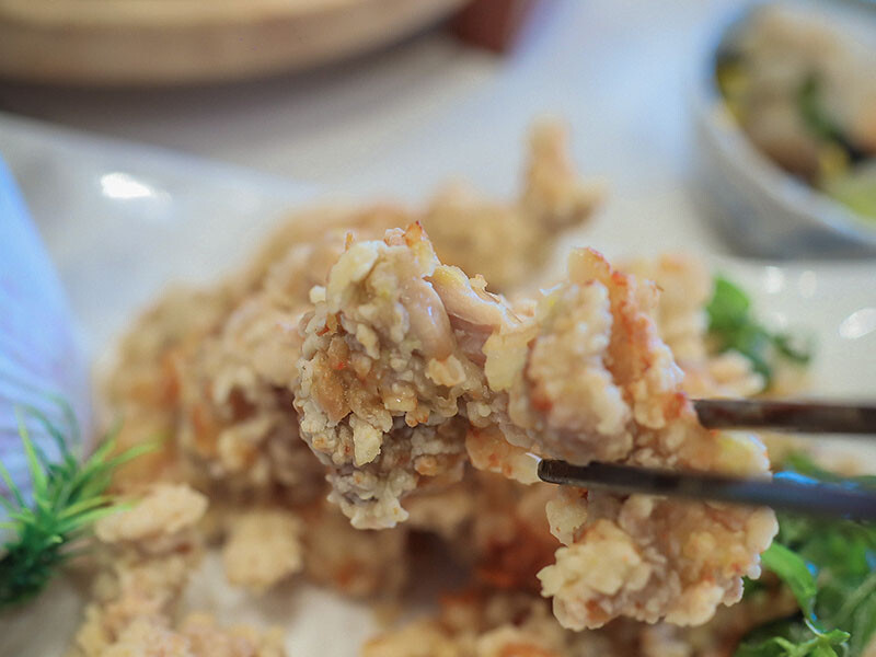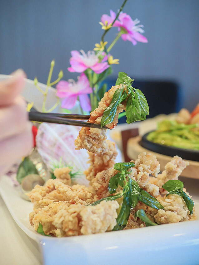 千八料亭原身日料起家,小菜就可以搭配日式的唐揚雞和嫩烤松坂,雞肉嫩且雞汁誘人,松坂本身的肉質就很不錯,香烤直接吃口感也很好;炸烤物會附上冰梅醬,沾著吃會增添一點清爽的風味。