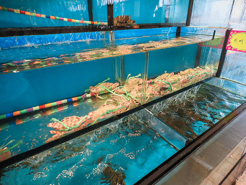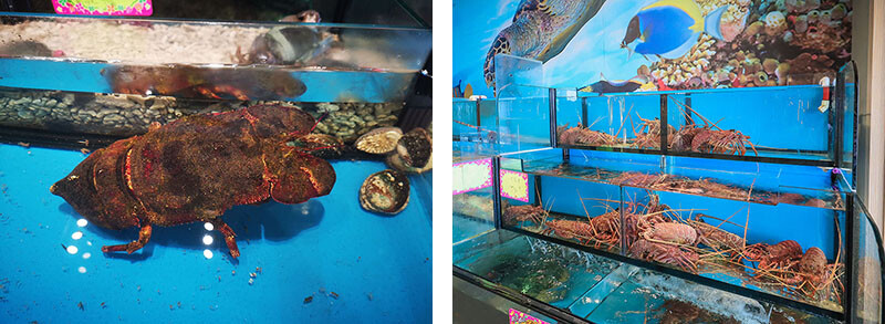 餐廳內的空間只能用氣派豪華來形容,一樓的入口有養殖缸,來漁港就是要吃新鮮,瀨尿蝦、海戰車、大鳳螺、石斑和紅咚咚大尾水姑娘、錢鰻全都活跳跳,各樣都有清楚標價不怕被灌水~