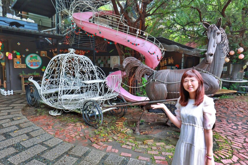 這場景真的無敵,美美的拍照都會覺得超有氣質,原來紙做的木馬也是可以直接坐到上面去~超酷的!