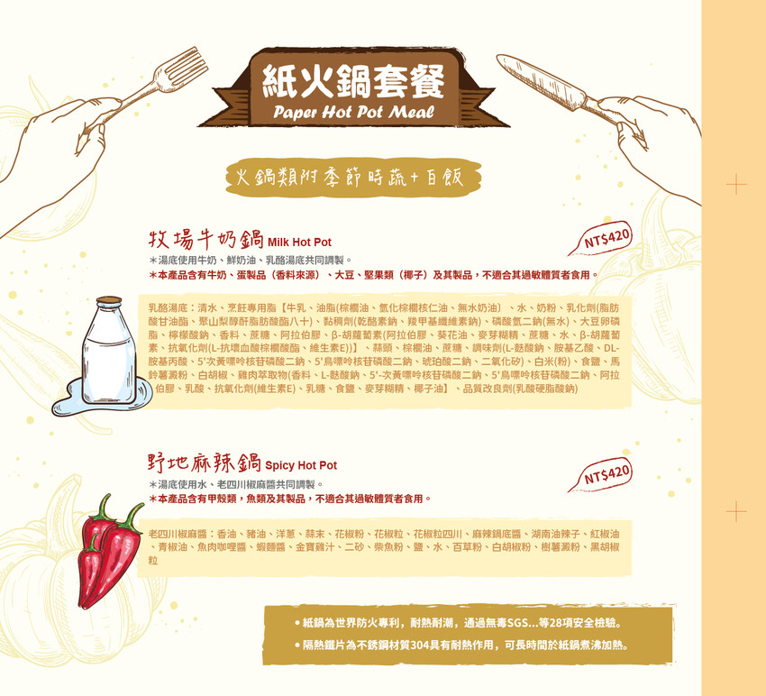 紙火鍋有很多的口味,我們點了一份牧場牛奶火鍋,還真的好吃呢!