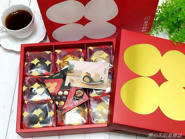 金燦茶香禮盒(9入)NT$645,是綜合禮盒,內含黑金流芯酥3入、金牌蛋黃酥3入、紅玉綠豆凸3入及精美的祝福小卡、商品DM,看起來豐盛大方,也能滿足不同口味的喜好!
