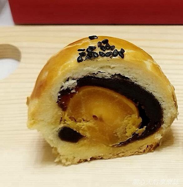 一口咬下,感受到多層次口味的完美結合~奶油餅香、甜蜜紅豆香、鹹蛋黃鹹香搭配少許黑芝麻,有著先甜後鹹的美好滋味!