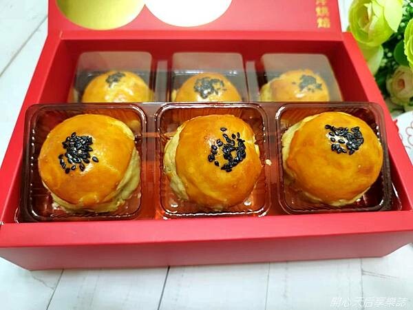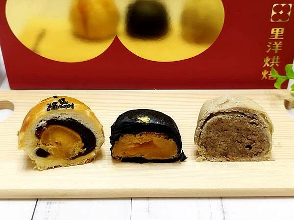 金牌蛋黃酥、黑金流芯酥、紅玉綠豆凸外型渾圓,內餡飽滿,餅香撲鼻而來,讓我感覺餓了~