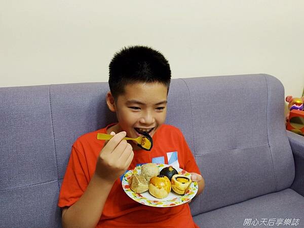 恩恩貪心的每一種都要吃,尤其搶先吃黑金流芯酥,很識貨!