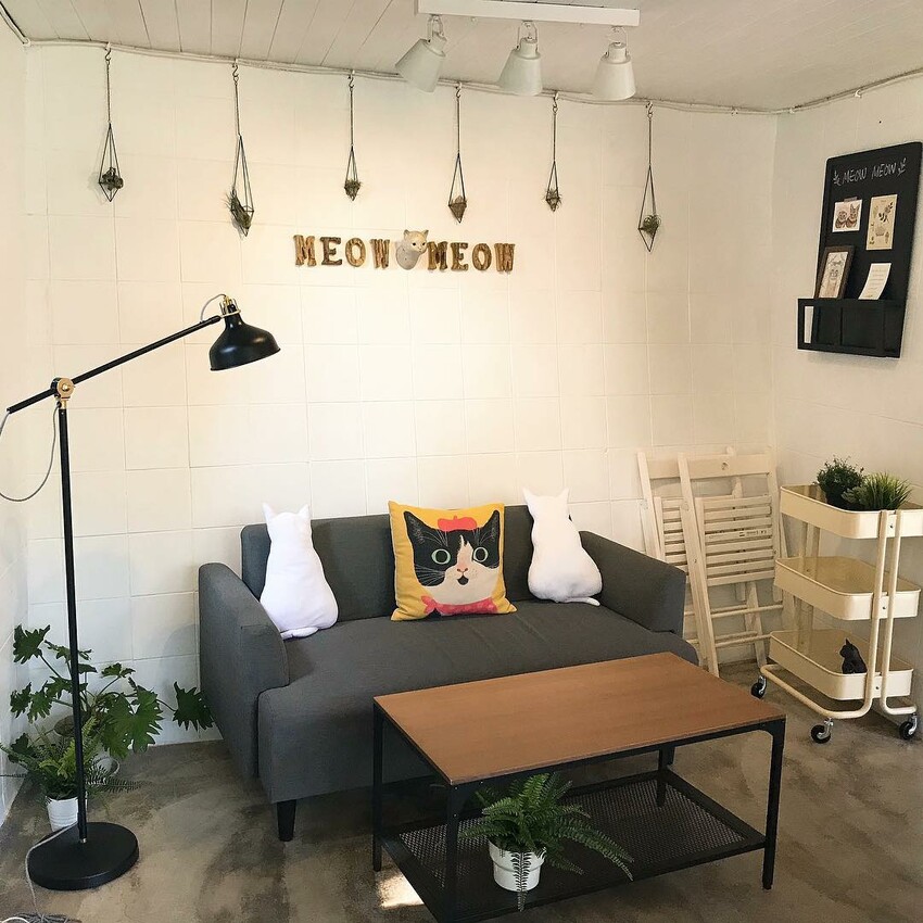 IG上熱門的Meow Meow喵喵,整間店利用白色系與各式貓咪擺設的韓系小清新,一入門即是吧台與高腳椅,目前店內僅提供義式咖啡、現泡茶飲、莓果昔等飲品,沒有提供餐點,飲品價格方面也是很親民大約NT$110-NT$150,網友推薦來這一定要點一杯可愛程度爆棚的貓咪拉花咖啡!