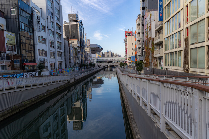 從餐廳的大門出來就可以在道頓堀河岸漫步,早晨的時間在這裡散散步也是很愜意。