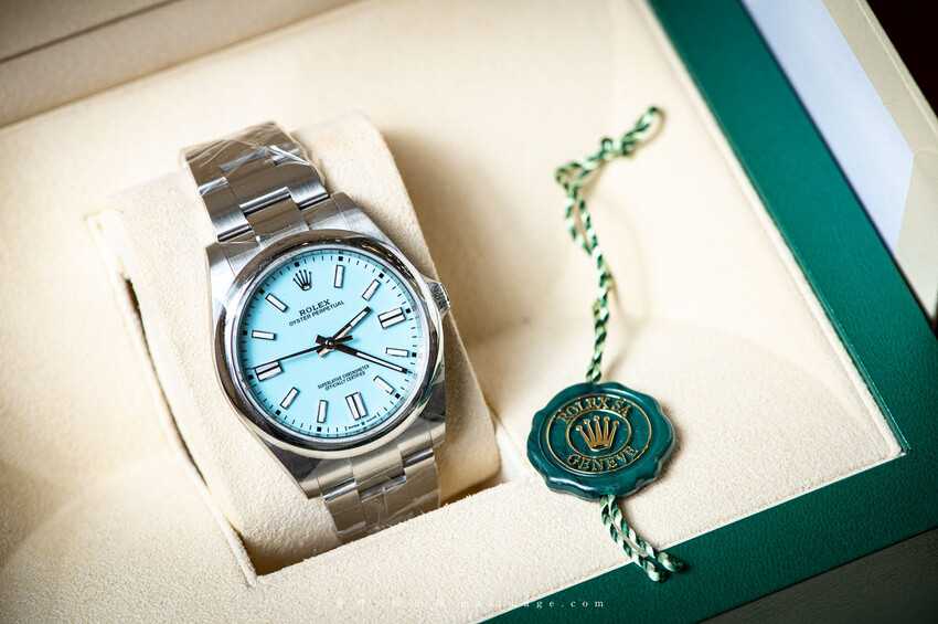 勞力士一直都是市場火熱的名錶品牌,只要面盤上有些小更動、新穎色系,「玩面盤」成為賞錶重點,熱門款式經常得「配貨」或「超定價」才買得到。近日溢價最驚人的錶款非蠔式Oyster Perpetual 41綠松石藍面錶莫屬,因為顏色近似美國珠寶商Tiffany & Co.標誌性的Tiffany Blue,2022年微漲價後的定價20萬2千元,但市場上竟已炒到上百萬元。