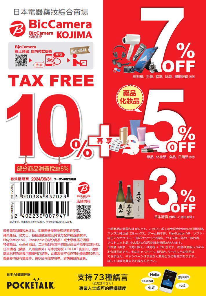 搭配最新的Bic Camera優惠券,除了免稅10%.最高還可以再加上7%的超值優惠