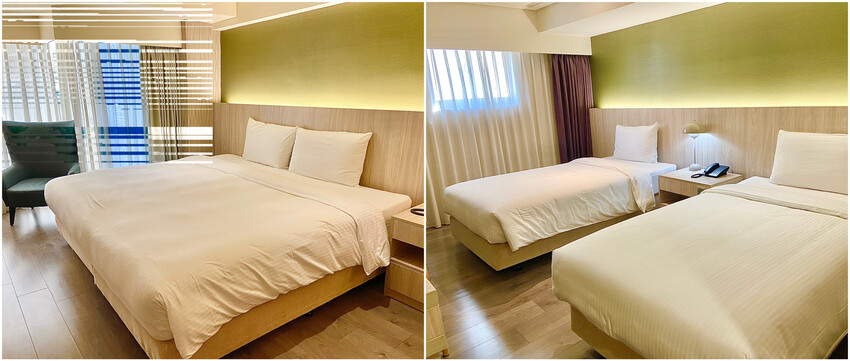 ▲為了商務住宿旅客居多,基本提供二張單人床,如提供雙人一大床,就會直接把單人床合併在一起喔!