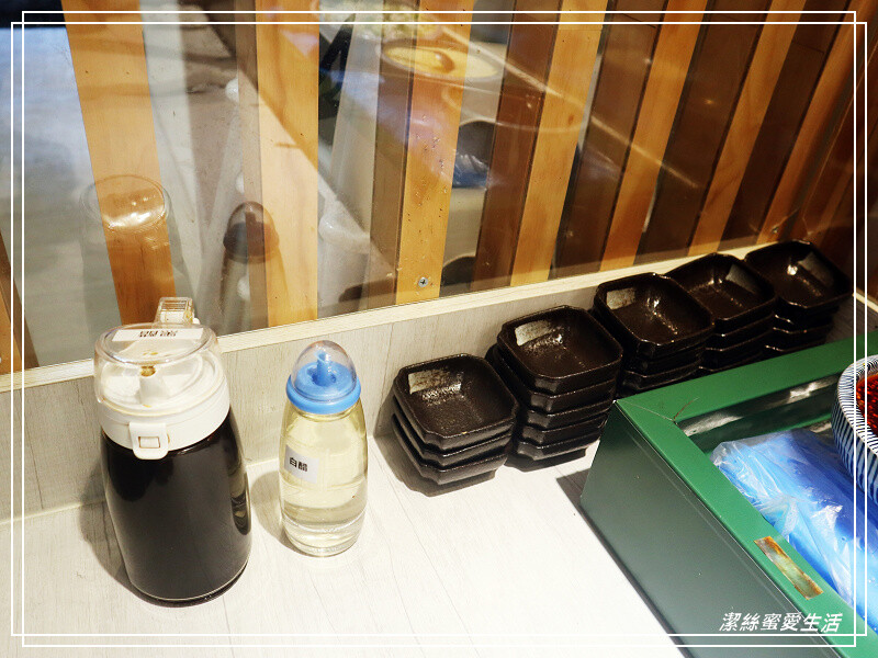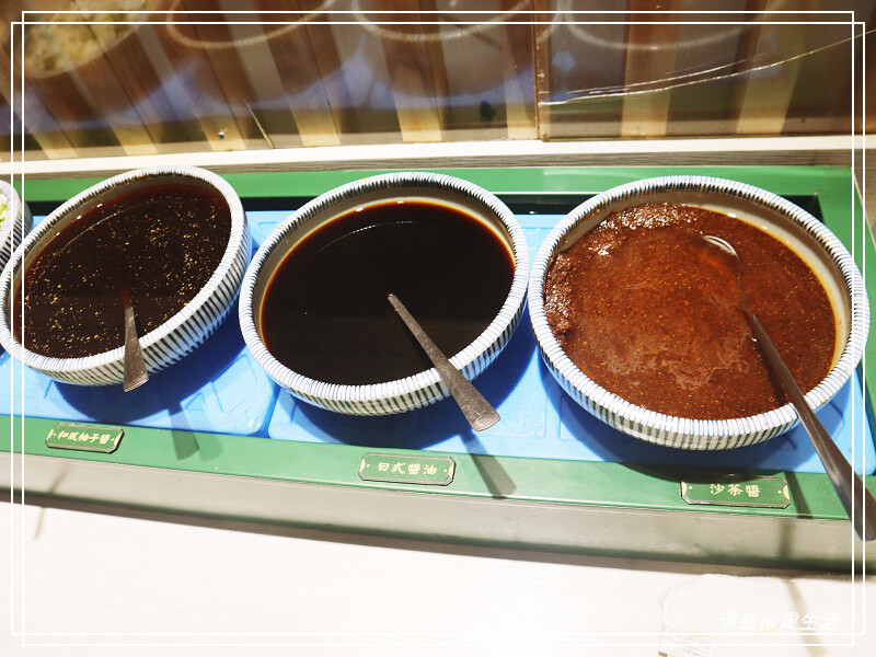 再過來是醬料區,有四種醬料及蒜泥/蔥花,一旁還有烏醋及白醋任你搭。